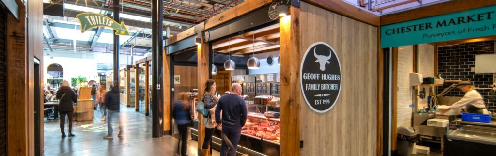A range of bespoke market stalls take centre stage, wrapped around a central dining space offering the opportunities for raised seating areas and planting opportunities to animate the interior. For more on the new market see www.newchester.market
